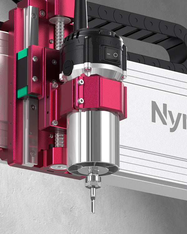 - Custom-Made 710W Router: Using the NymoLabs CNC router as a CNC spindle is a powerful choice. Its soft start, and constant current drive features, make the spindle RPM slow to fast without stalling.
